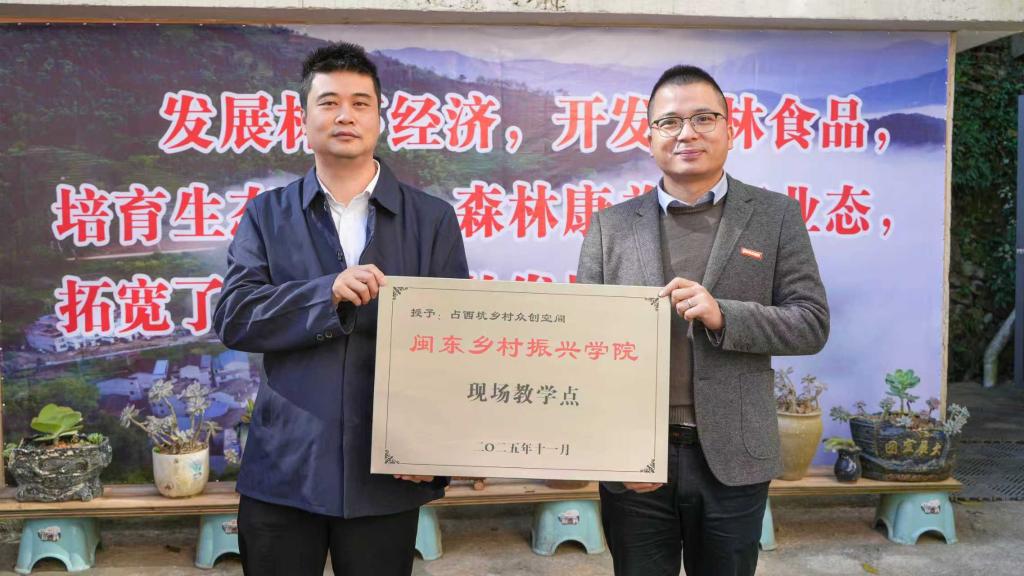 借此机会,闽东乡村振兴学院将占西坑乡村众创空间 确定为闽东乡村振兴学院现场教学点,双方举行了授牌仪式。